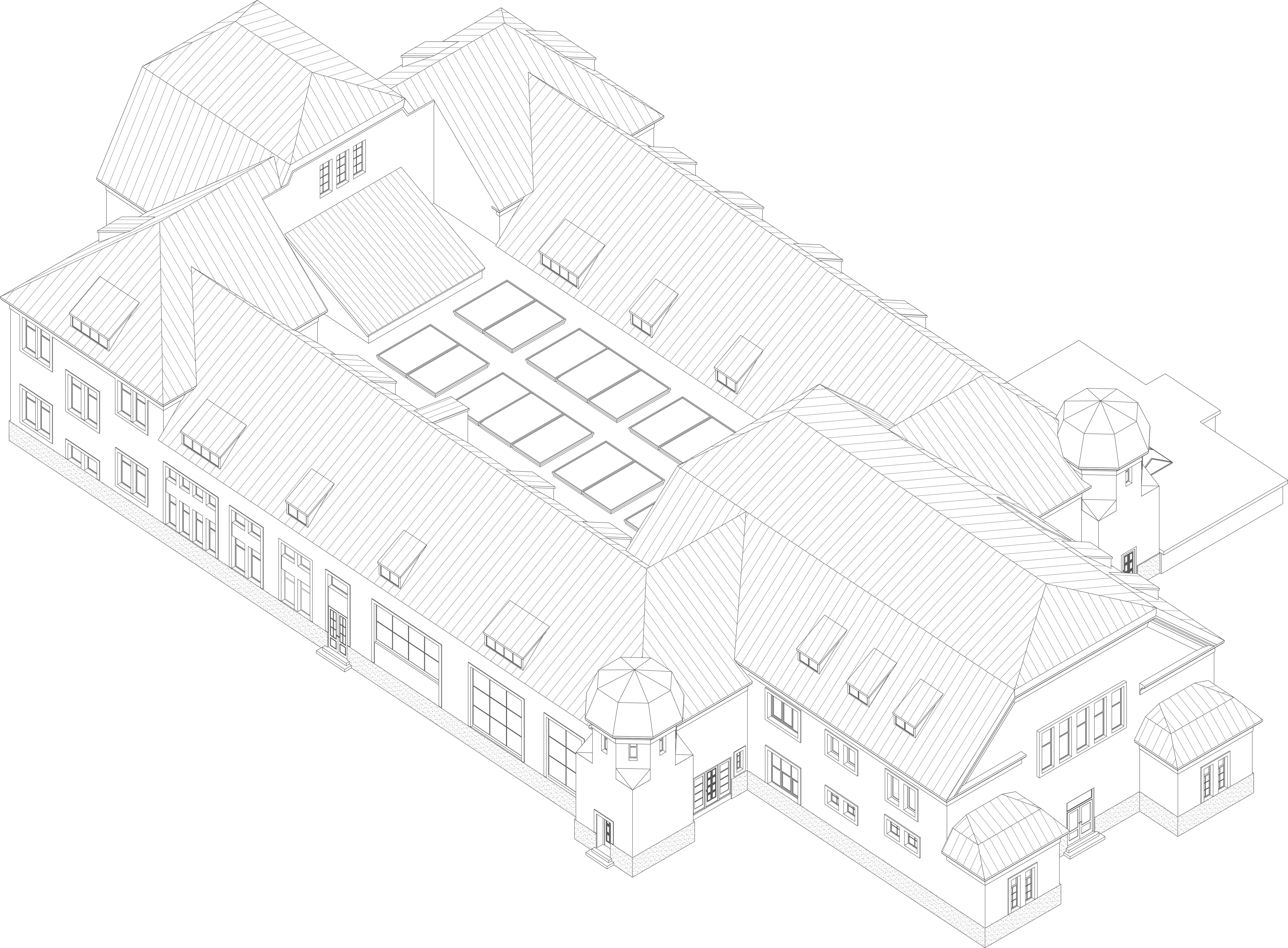 Solide Substanz bewahrt, Fragiles in alternativer Form wiedererrichtet. Im Zentrum das ehem. Wohlfahrtsgebäude, ein sozialer Ort für Gemeinschaft, Hygiene und ärztliche Versorgung mitten in der Industrieanlage des Gaswerks Leopoldau. Heute ein Stadterweiterungsgebiet, Neubauten zwischen den Bestand gesetzt. Dieser aus dem Beginn des 20. Jhd., im klassischen Heimatstil: Mansardendächer, Natursteinsockel, wenige Ornamente. Das Erdgeschoss massiv, solide, standfest. Der Dachstuhl fragil, die Räume darunter schwer nutzbar. Stattdessen alternative, großzügige Dachformen in Holz-Leichtbauweise entwickelt. Symmetrie und Stil gelockert, den Kern bewahrt, das Dach überformt und so behutsam den Erhalt des Bestands mit dem gezielten Einsatz von Hinzugefügtem amalgamiert. Die Transformation des historischen Gebäudes als Verbindung zwischen Alt und Neu, als Übersetzung von Vergangenem in das Zukünftige.