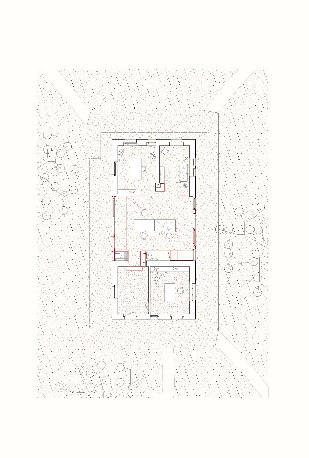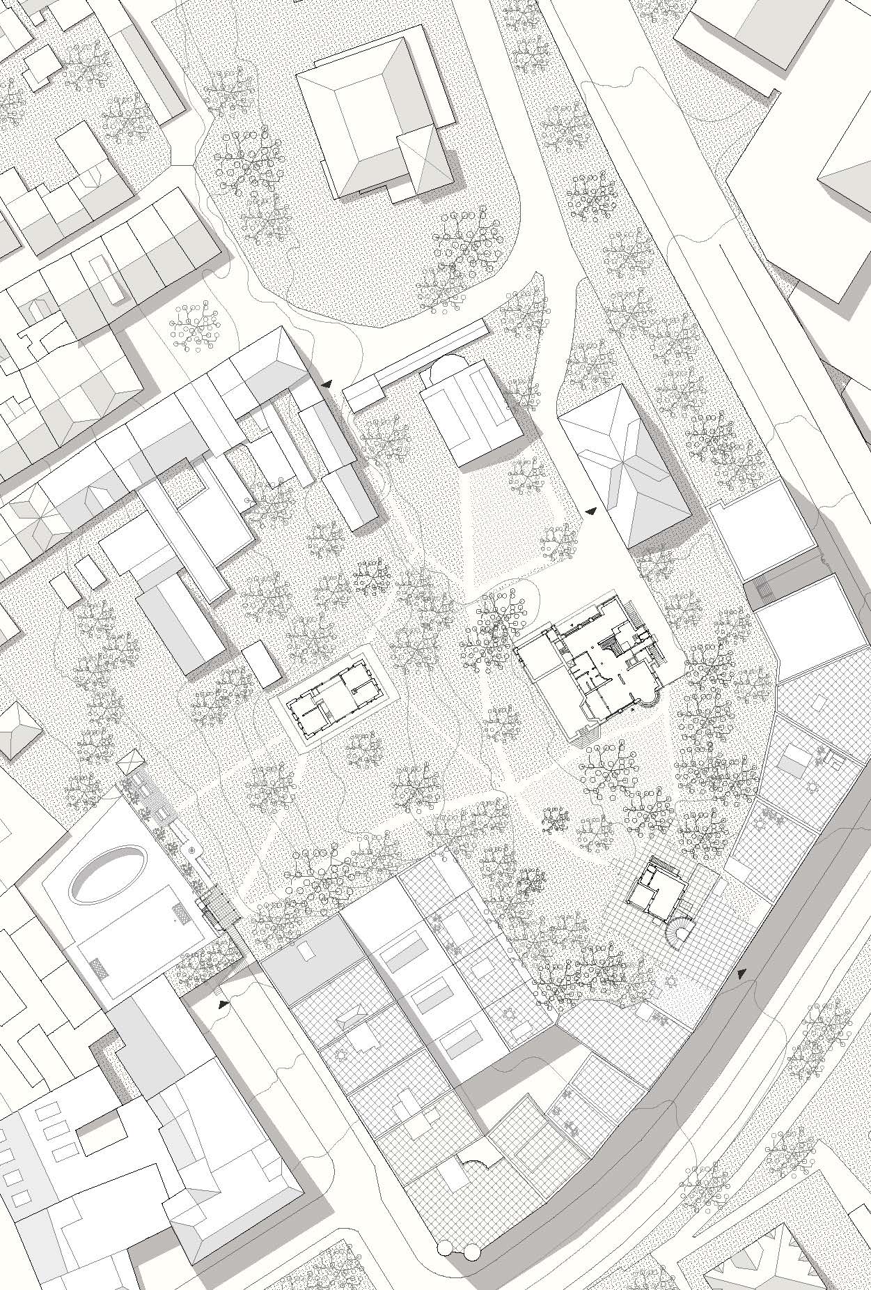 Die Arbeit beschäftigt sich mit der Villa Landolt und den zugehörigen Kleinbauten in einem „verborgenen“ Garten auf der Winkelwiese inmitten der Zürcher Altstadt. Die bestehenden Bauten werden durch gezielte Eingriffe gestärkt und zugleich neu interpretiert. Die räumliche Idee besteht darin, die Gebäude zu öffnen und neue Beziehungen zum umgebenden Garten sowie zur städtischen Nachbarschaft herzustellen. Hierfür werden unterschiedliche konstruktiv-entwerferische Strategien eingesetzt, um den Ort in das städtische Gefüge einzubinden. Mit minimalen Mitteln wird eine maximale Wirkung angestrebt, um die Qualitäten des Bestandes zu bewahren und in erfrischender Weise weiterzuentwickeln.