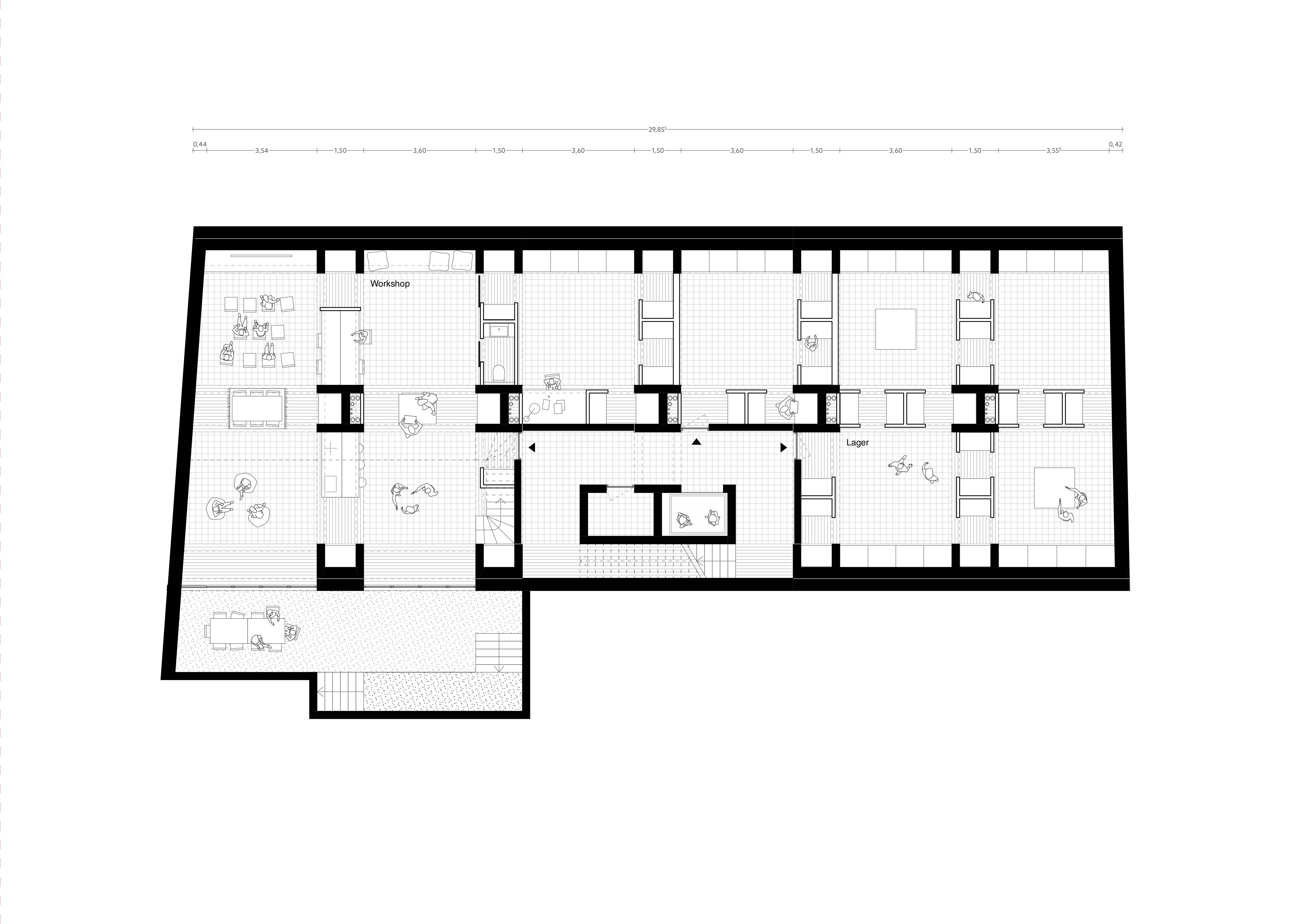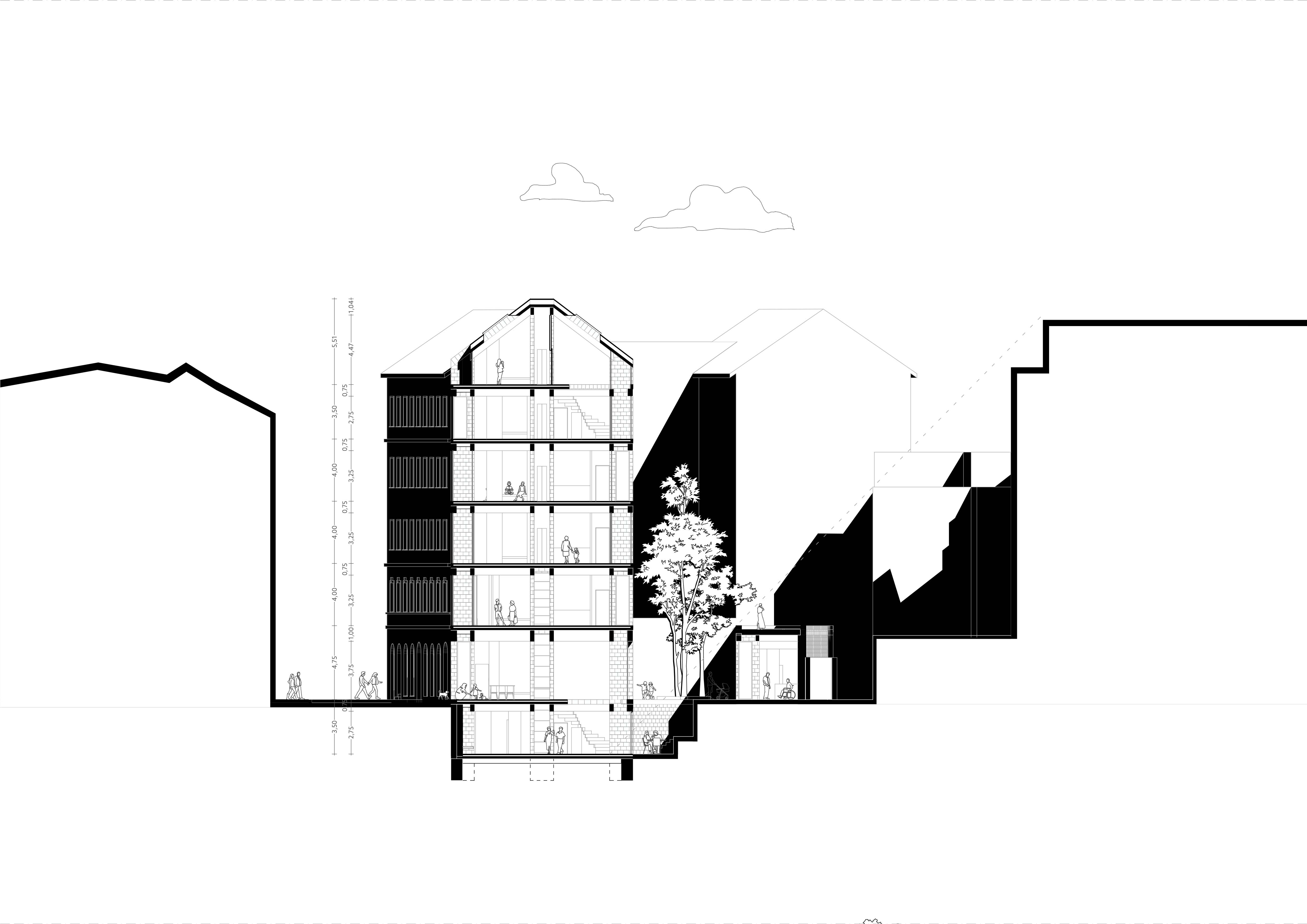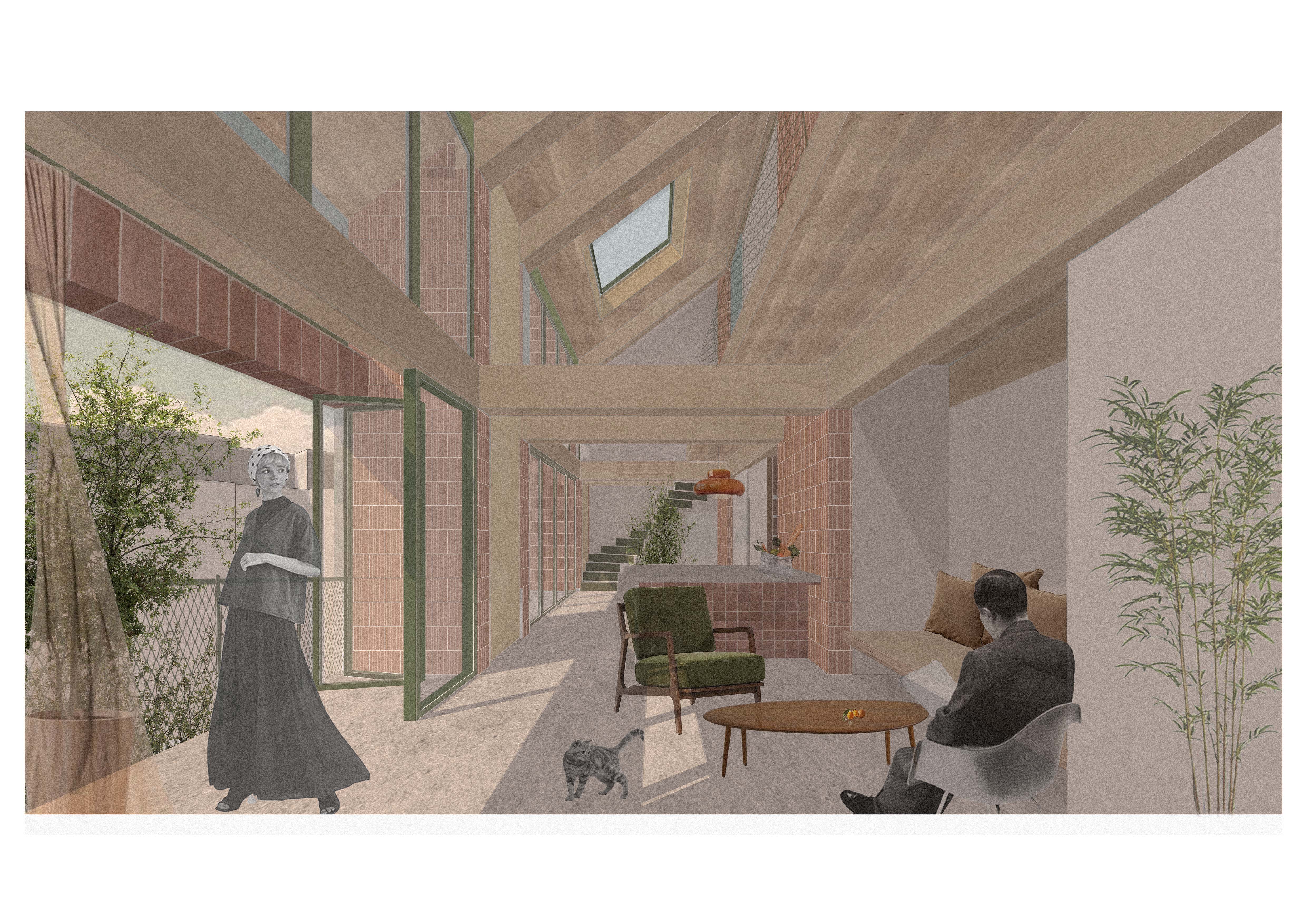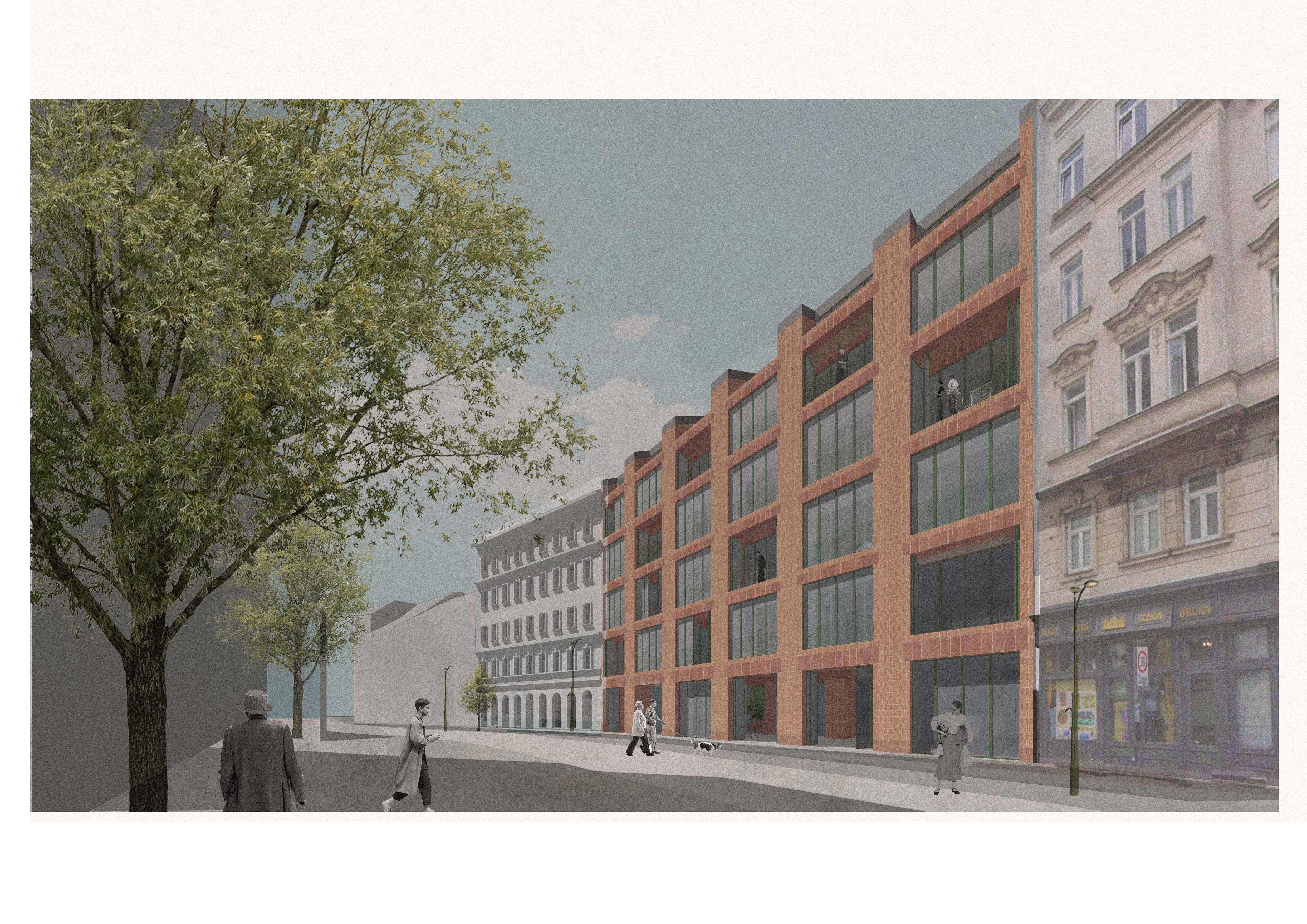 Durch einen prototypischen Entwurf werden die gewonnenen Erkenntnisse als multiplizierbares System umgesetzt. Dieses dient vor allem als skalierbares Konzept für die räumliche und strukturelle Organisation, das über Variablen an den Kontext angepasst werden kann und so auf weitere Grundstücke übertragen wird. Das System bildet den Rahmen für eine individuelle Gebäudegestaltung und ist darauf ausgelegt, größtmögliche Flexibilität in der Nutzung bei gleichzeitig überschaubarem baulichen Aufwand für Veränderungen zu gewährleisten. Daher ist das Bauwerk nicht als fertiges Objekt zu sehen, sondern als Prozess, der erst durch die Nutzer_innen weiterentwickelt wird. Durch die Auslegung auf Resilienz und Langlebigkeit ist der Entwurf somit ein Ansatz für die nachhaltige Gebäudeentwicklung der Zukunft.