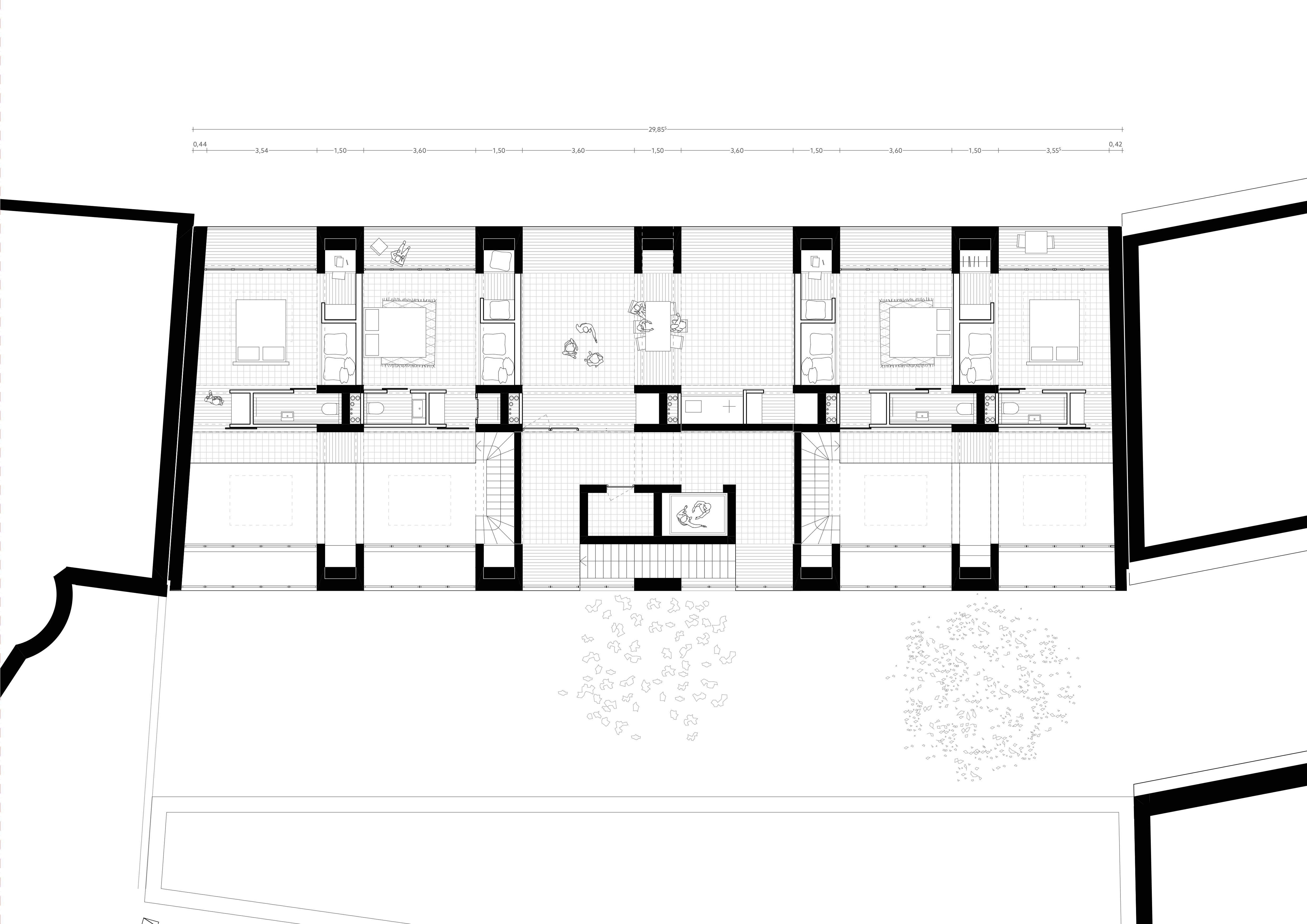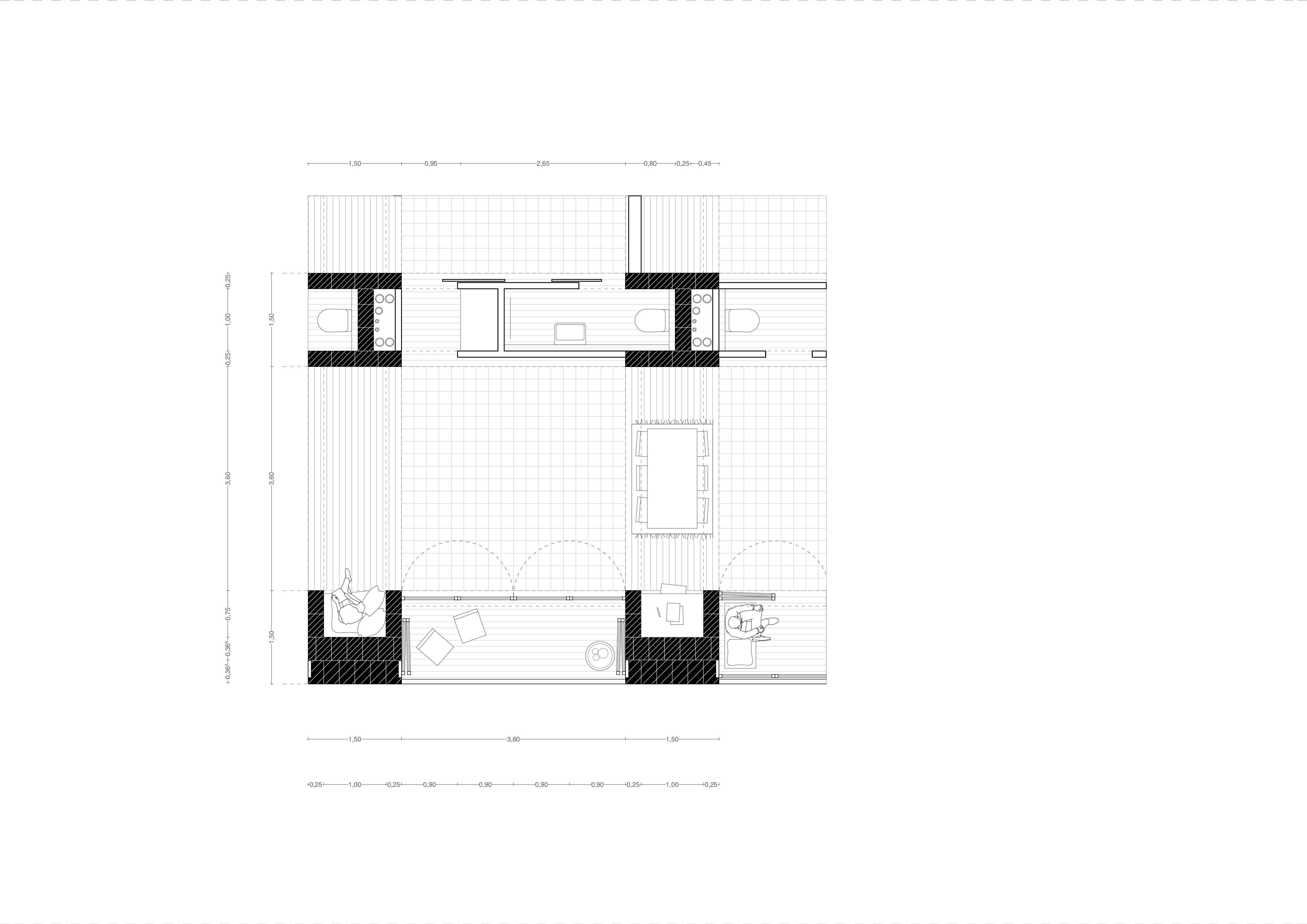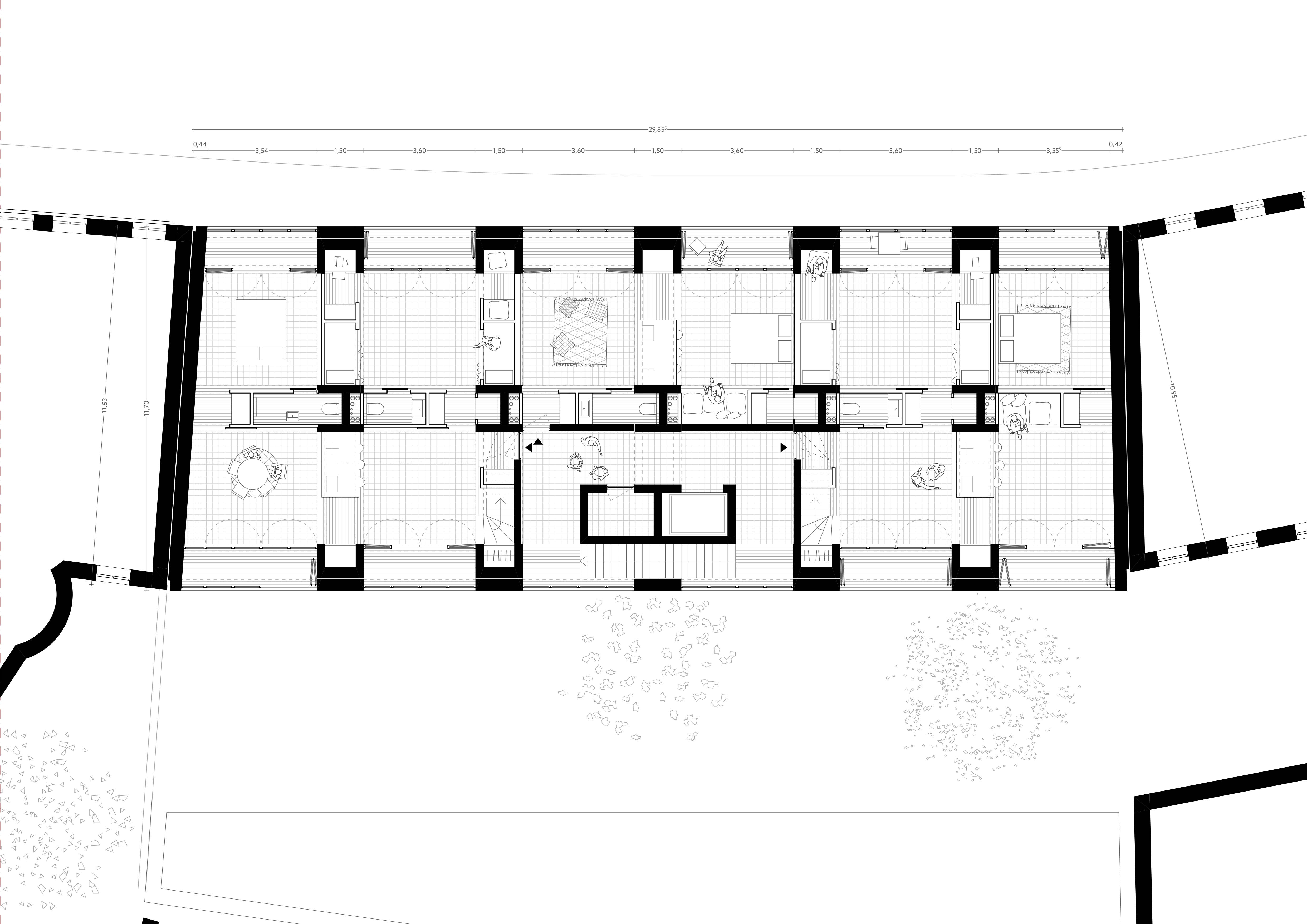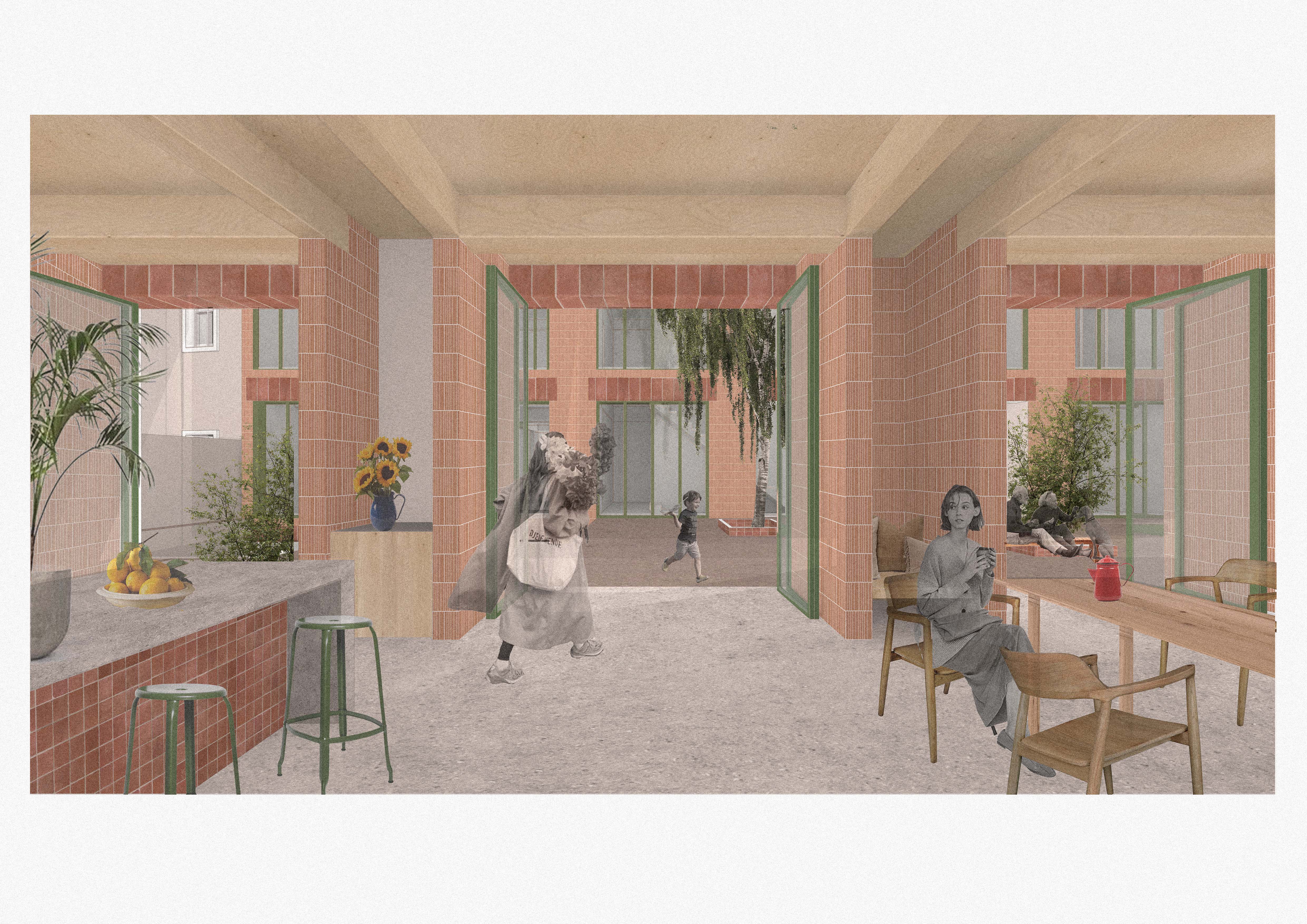 Durch einen prototypischen Entwurf werden die gewonnenen Erkenntnisse als multiplizierbares System umgesetzt. Dieses dient vor allem als skalierbares Konzept für die räumliche und strukturelle Organisation, das über Variablen an den Kontext angepasst werden kann und so auf weitere Grundstücke übertragen wird. Das System bildet den Rahmen für eine individuelle Gebäudegestaltung und ist darauf ausgelegt, größtmögliche Flexibilität in der Nutzung bei gleichzeitig überschaubarem baulichen Aufwand für Veränderungen zu gewährleisten. Daher ist das Bauwerk nicht als fertiges Objekt zu sehen, sondern als Prozess, der erst durch die Nutzer_innen weiterentwickelt wird. Durch die Auslegung auf Resilienz und Langlebigkeit ist der Entwurf somit ein Ansatz für die nachhaltige Gebäudeentwicklung der Zukunft.