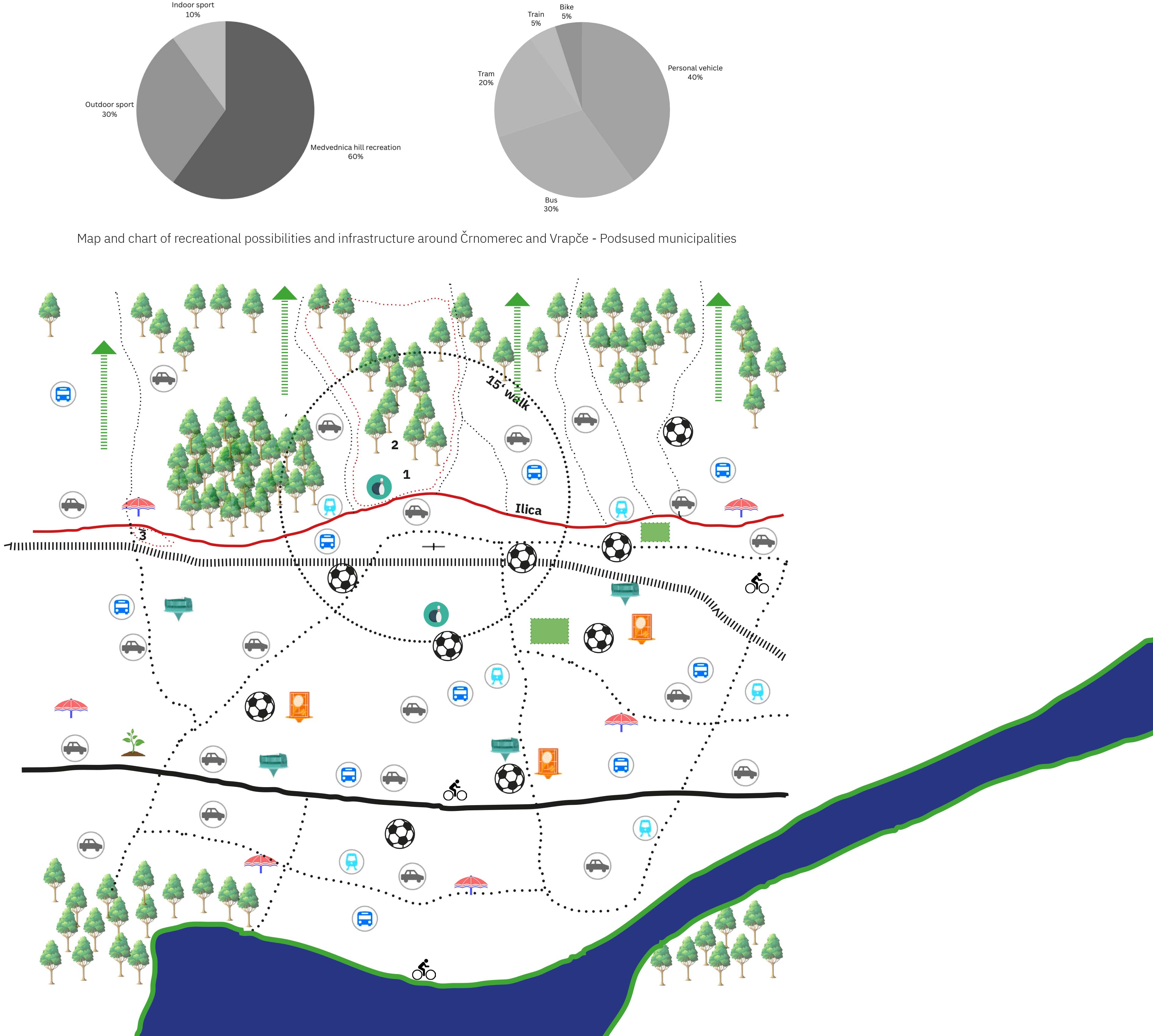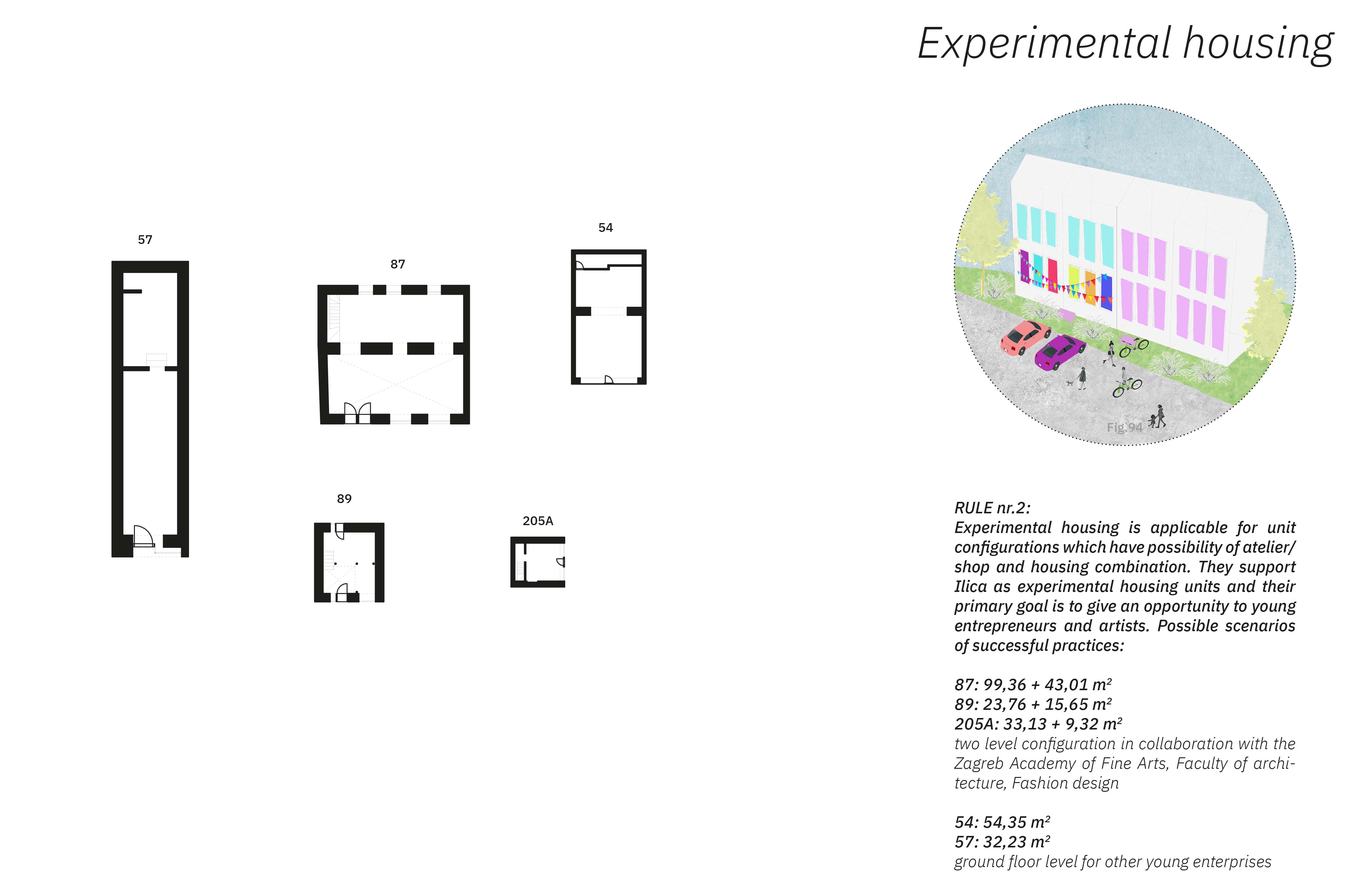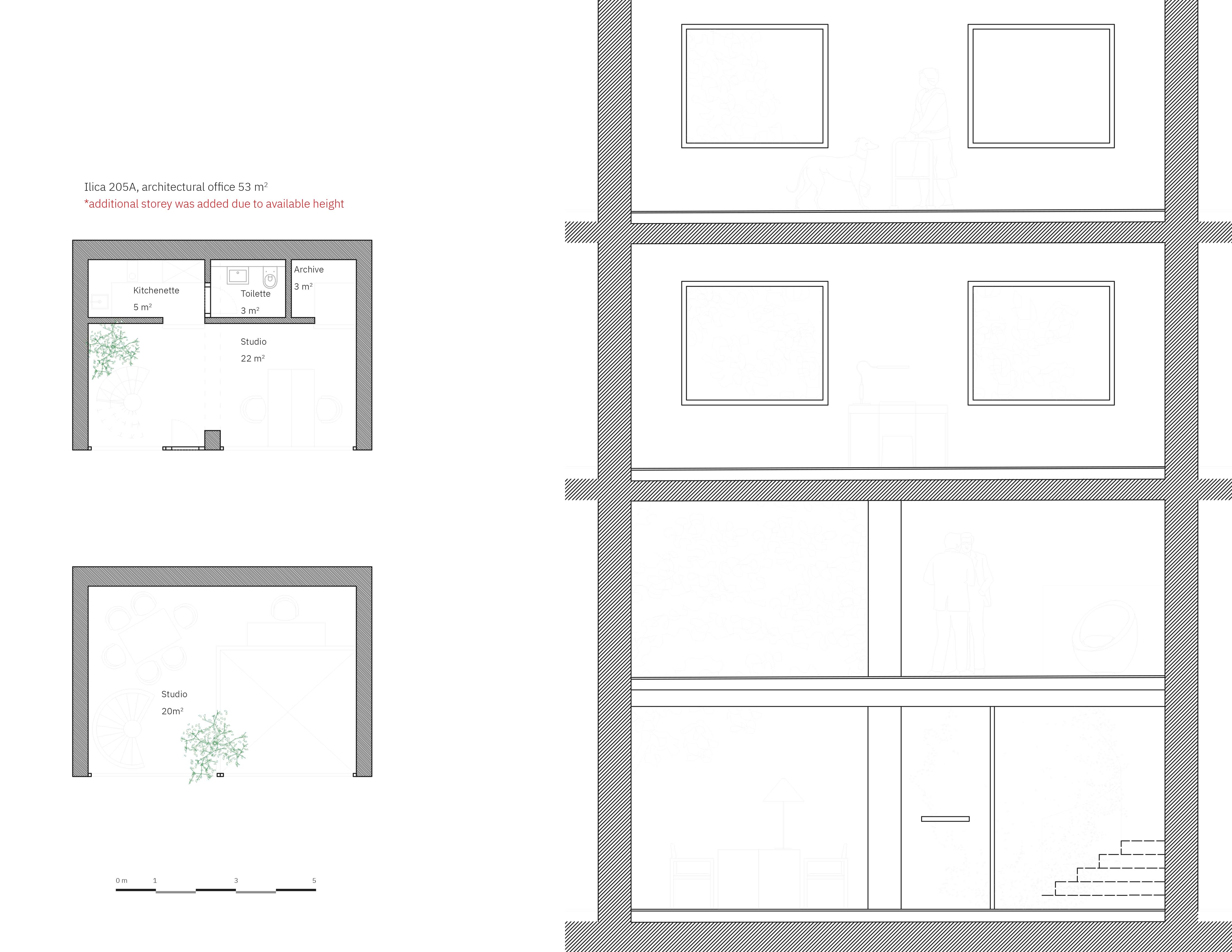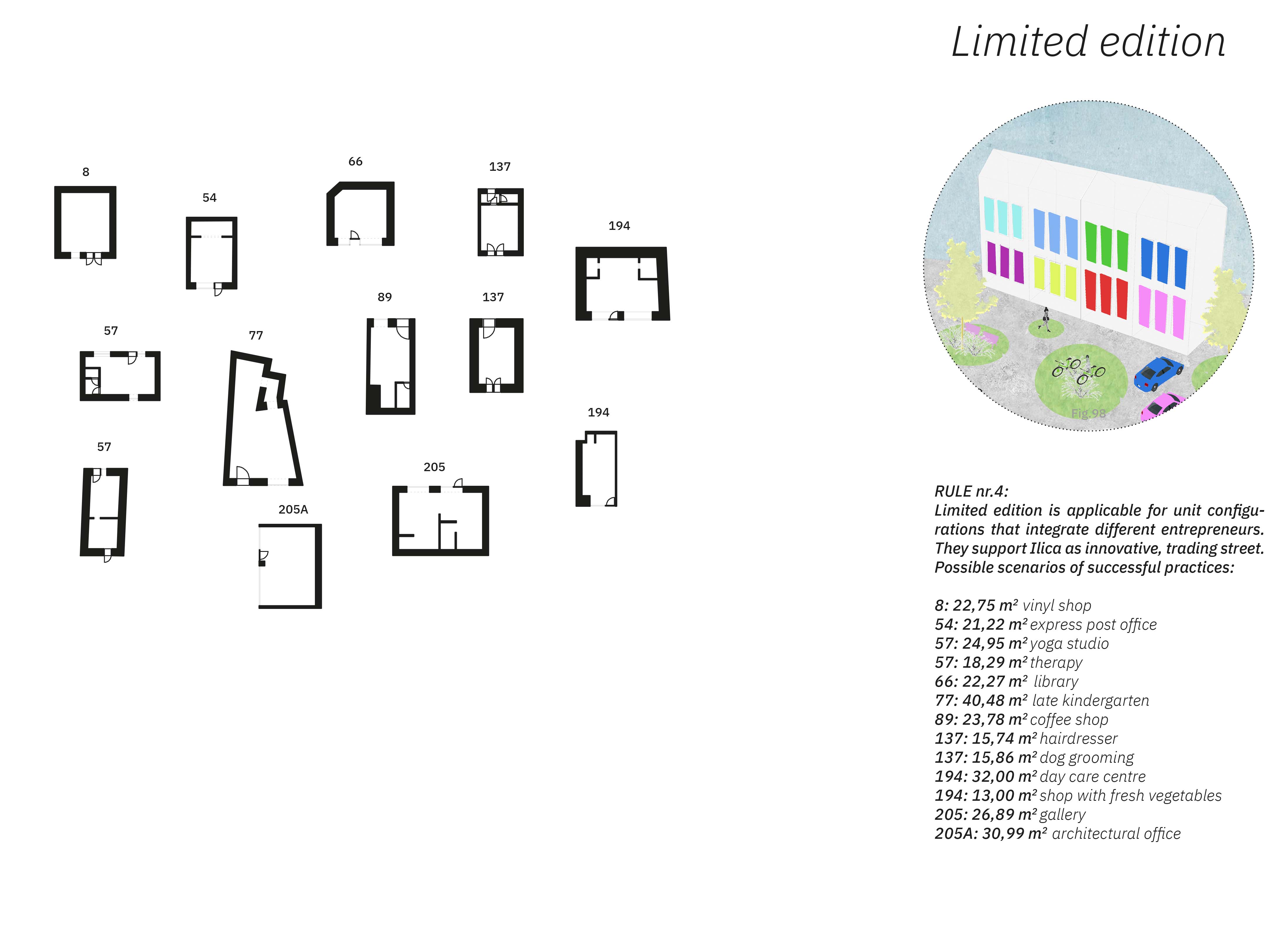 With a length of 5.7 kilometers, Ilica is Zagreb’s third longest street. It is a street full of stories and historical influences that are reshaping the form and exchanges between several stages of a very dynamic life. Despite being the primary cause of morning traffic jams, Illica serves as the main connector between the western and eastern parts of the city. The city blocks closer to the city center are in better shape, and at ground floor level they brim with life, contributing to a buzzy street atmosphere. The situation changes rapidly after one kilometer, many ground floors are vacant, and there is a changing typology of unused spaces that are aesthetically pleasing but act strangely. There is no space for bikes, sidewalks are narrower, and cars replace trams in areas that could be reserved for other users. This project aims to go more deeply into the street’s history and morphology as well as the street level environment. What is Ilica telling us? How did things come to be the way they are? Since each zone requires a different approach, the primary focus is on the different sequences and elements of Ilica. While in one zone we deal with the problem of undefined urban voids that appear like urban mutants, in another we look at vacancies that have potential as social spaces and a street-level environment for healthy activities, something that is lacking at present. Following the collection and analysis of data, the project concentrates on establishing a proper connection across various scales.Alle hier hochgeladenen Inhalte sind das eigene Werk der Absolventin oder des Absolventen.