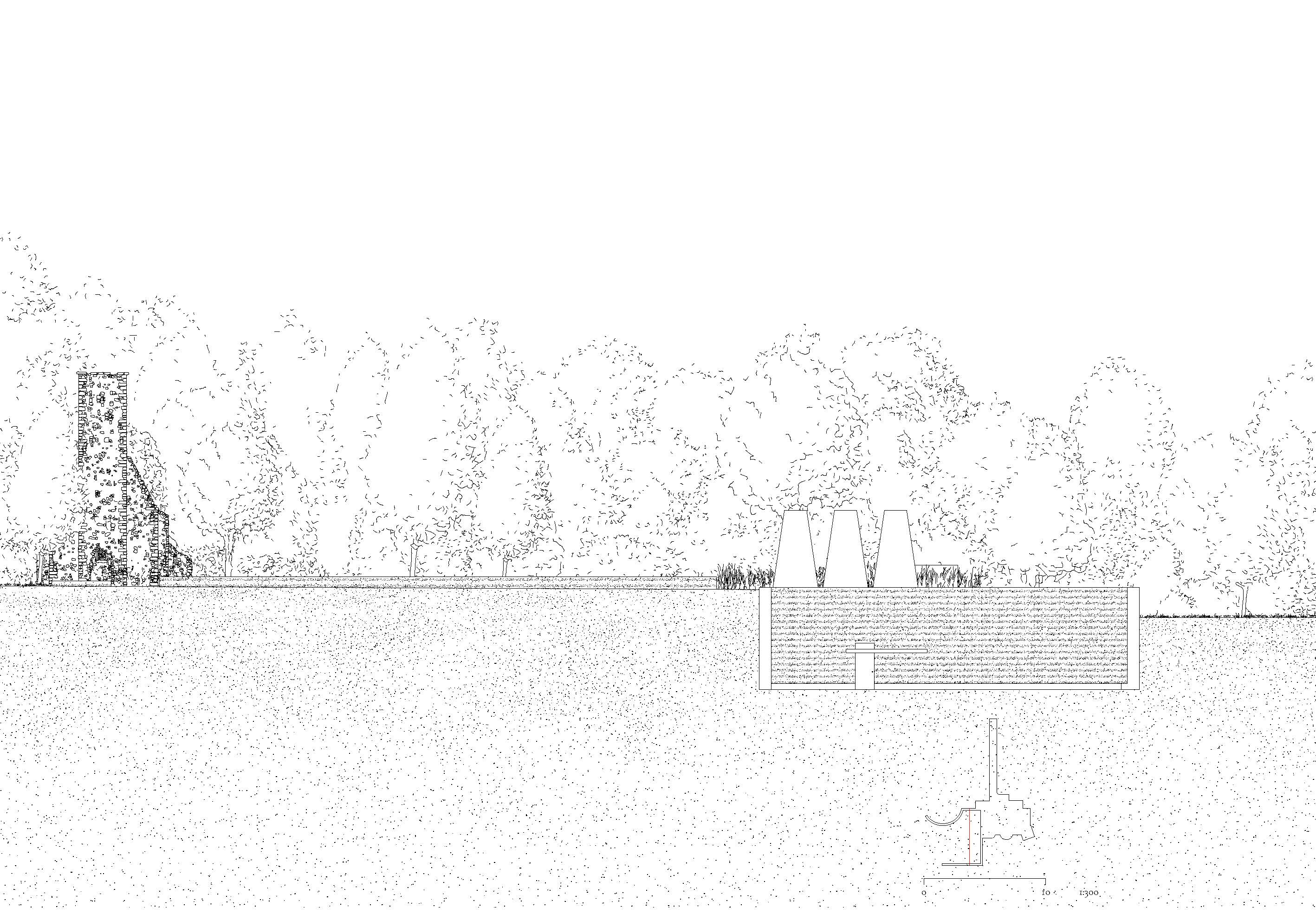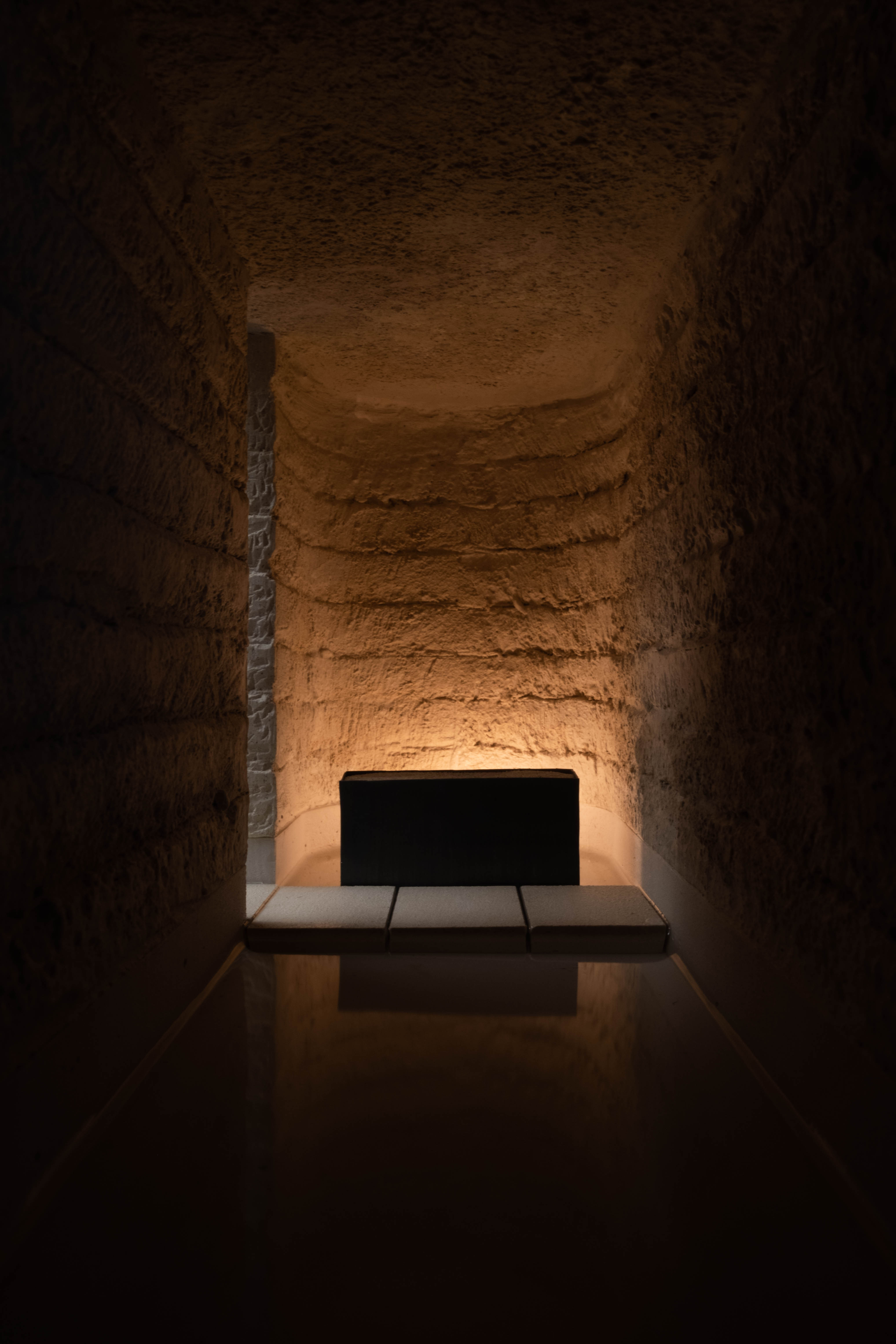 Direkt neben einer Hauptschlagader der Globalisierung, nahe am Bedürfnis und näher am Gläubigen, liegt ein Ort der Stille – ein Ort der Besinnung, ein Ort der Zuflucht vor dem stetig fließenden Strom des täglichen Lebens. Ein Ausbrechen aus dem regen Treiben – ein Einbrechen in das Innerste. Die verborgene Präsenz eines vor Jahrhunderten verlassenen, kraftvollen Ortes ist deutlich spürbar. Seine schlummernde spirituelle Kraft wird gestärkt und als Ankerpunkt in der dahinrasenden Zeit verstanden. Behutsam an die Schwelle geführt, liegt es an jedem Einzelnen, einzukehren – in sich selbst, aber dennoch die eigene Wahrnehmung entfaltend. Über die Schwelle tretend, verliert der Suchende die Zeit, entledigt sich seines Weltlichen, taucht ein in eine Weite jenseits der räumlichen Erfahrbarkeit und begibt sich auf eine geistige Reise. Der Raum erfüllt ihn, wie er selbst den Raum erfüllt. Ruhig und in sich gekehrt findet der Suchende, was er nicht zu suchen wagte – und noch weniger zu finden hoffte.