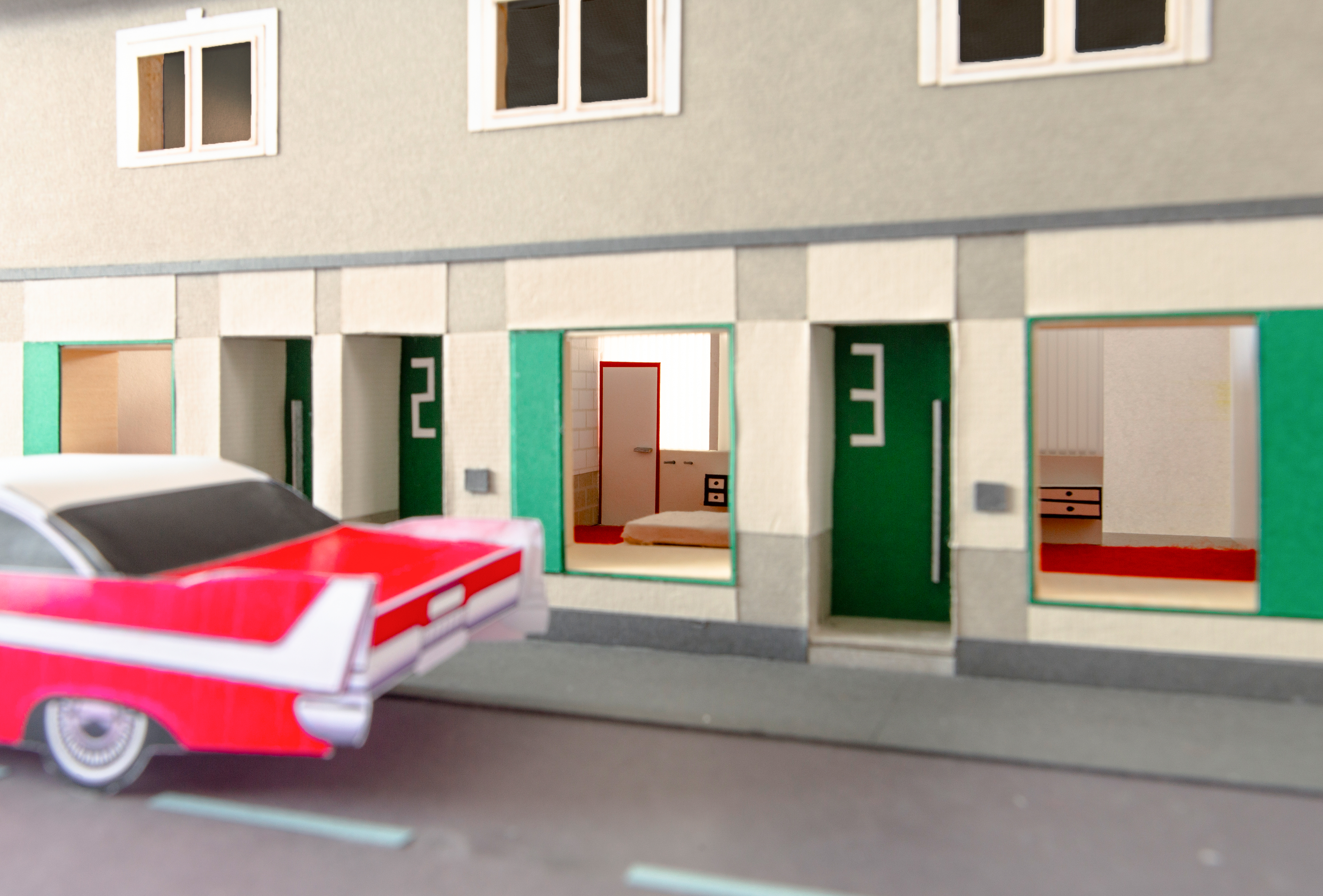 Die vorliegende Arbeit widmet sich dem landesweit verbreiteten Problem leer stehender Geschäftslokale in Ortskernen. Ausgehend von der These, dass relationale Kunst als Vorbild für architektonische Lösungen dienen kann, werden fünf unterschiedliche Nutzungsvorschläge entwickelt – darunter ein Mikro-Motel, ein Reparaturcafé und ein Kinoklub. Die zugrunde liegende Strategie folgt dem Prinzip der räumlichen Verdichtung: Der Entwurf wirkt über seine praktische Dimension hinaus als visuelles Signal, das der Hauptstraße neues Leben verleiht.