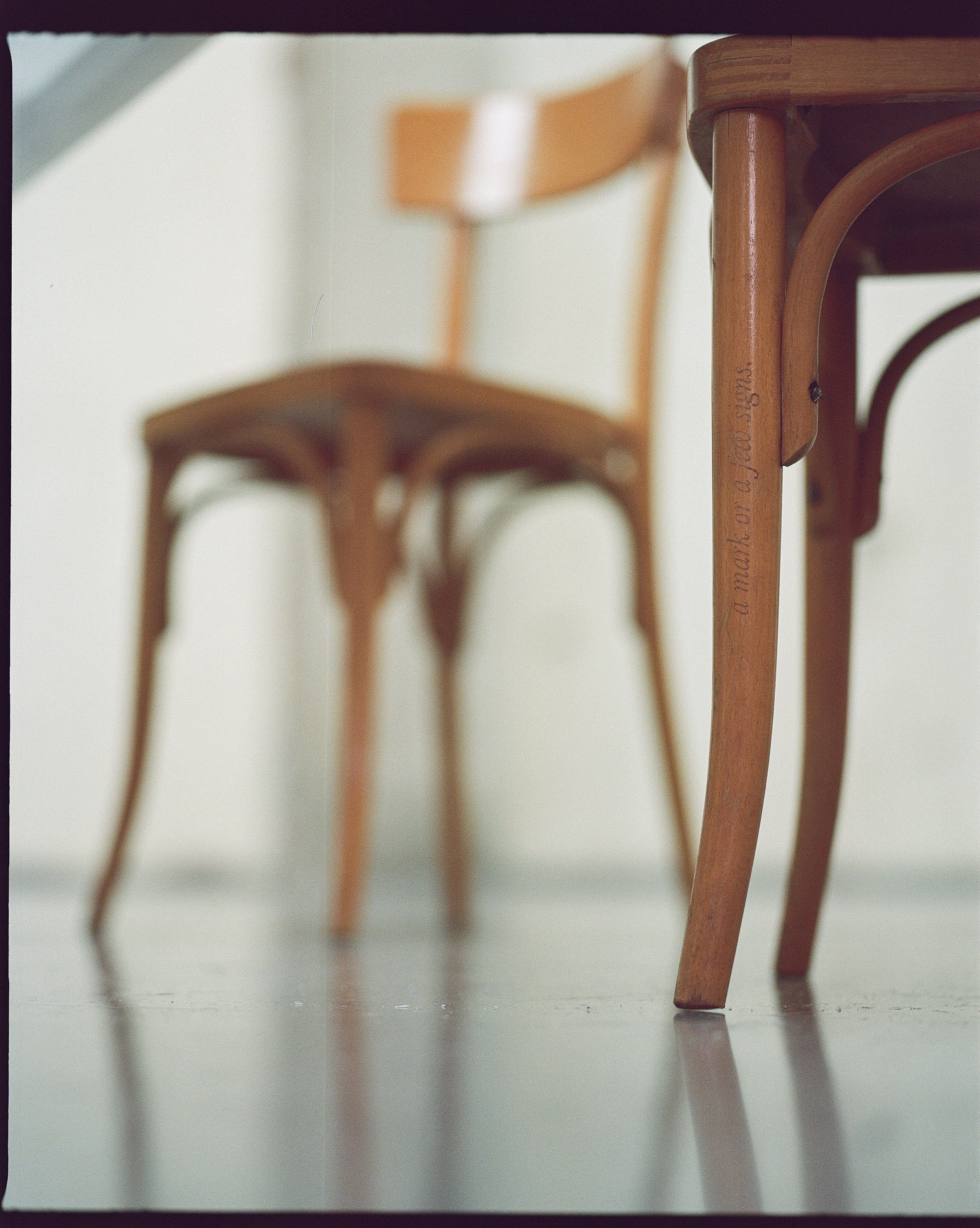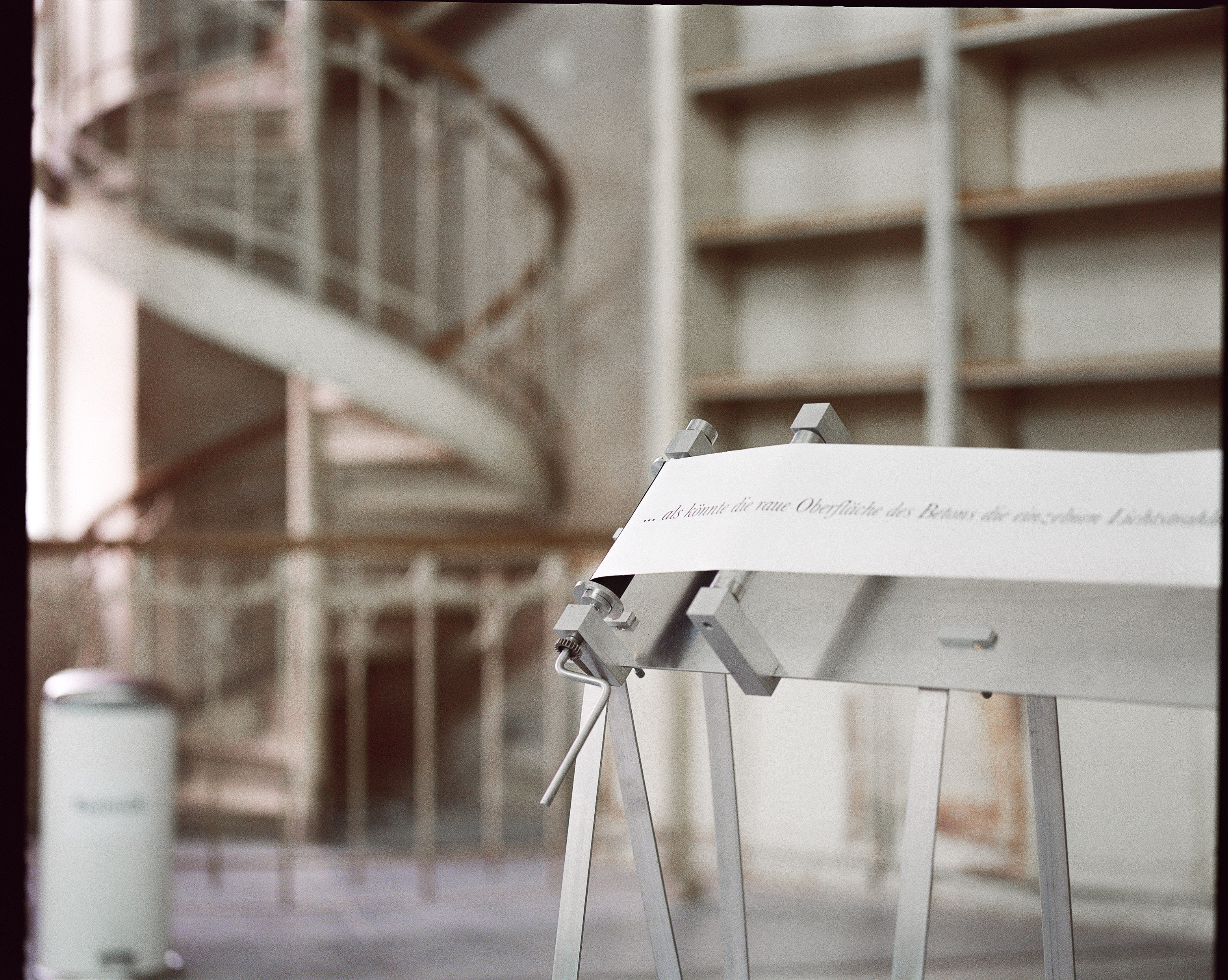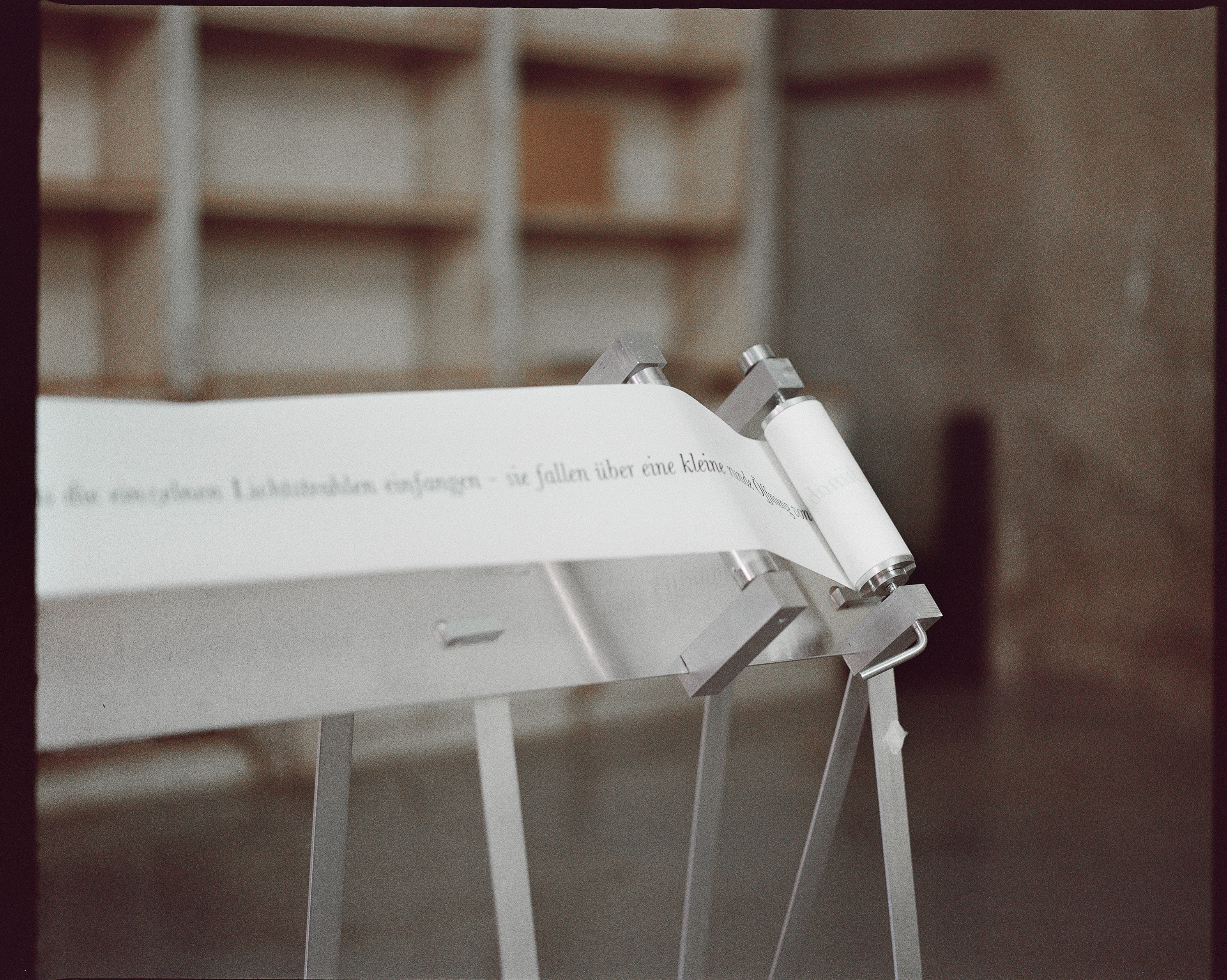 Der Inhalt dieser Arbeit und ihr Hauptthema sind identisch: Text und der Akt des Schreibens werden in den Mittelpunkt der folgenden Überlegungen zur Architektur gerückt, um eine Definition der Begriffe „Ort“ und „Raum“ zu entwickeln. Das zwischen diesen Begriffen und dem Schreiben aufgespannte Forschungsfeld ist komplex und außerordentlich vielfältig. Es war daher von Beginn an nicht das Ziel, dieses Themenfeld abschließend darzustellen oder eine eindeutige Theorie darüber zu formulieren, wie Raum geschrieben werden kann. Vielmehr werden unterschiedliche Perspektiven untersucht, indem theoretische Ansätze unredigierten Schriften über Räume, die von Kolleg_innen gesammelt wurden, gegenübergestellt werden. Mit dieser Herangehensweise wird die Dualität – die dialektische Beziehung zwischen Autor_innen und Leser_innen –, die tief im Akt des Schreibens verwurzelt ist, in den Vordergrund gerückt und eine heterogene Sammlung von Texten generiert, die verdeutlicht, wie tief das Selbst in die Räume, die es bewohnt, eingeschrieben ist, und wie tief diese Räume in das Selbst eingeschrieben sind. In diesem Prozess werden inhärente Potenziale dieses Aktes für die Wahrnehmung, Verarbeitung und Modulation von architektonischen Räumen ausgelotet. Abschließend finden diese Überlegungen ihre dreidimensionale Übersetzung in eine Installation, welche die Idee des Lesens und Schreibens aus der flachen, weißen Begrenzung der Seite herausführt. Sie besteht aus einem in Wachs gegossenen Tisch, vier gravierten Stühlen und Geräten zum Lesen einer fortlaufenden Textzeile.
