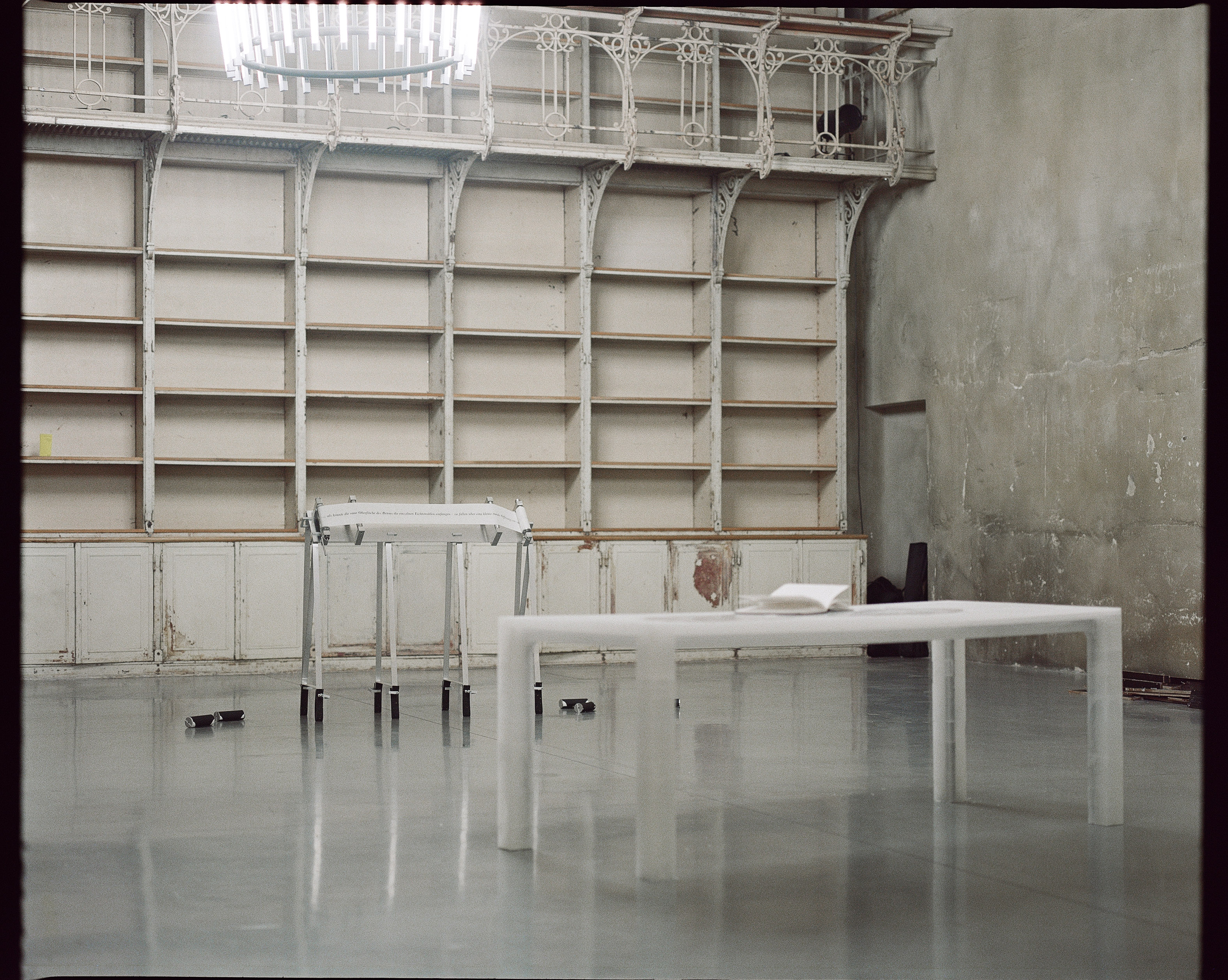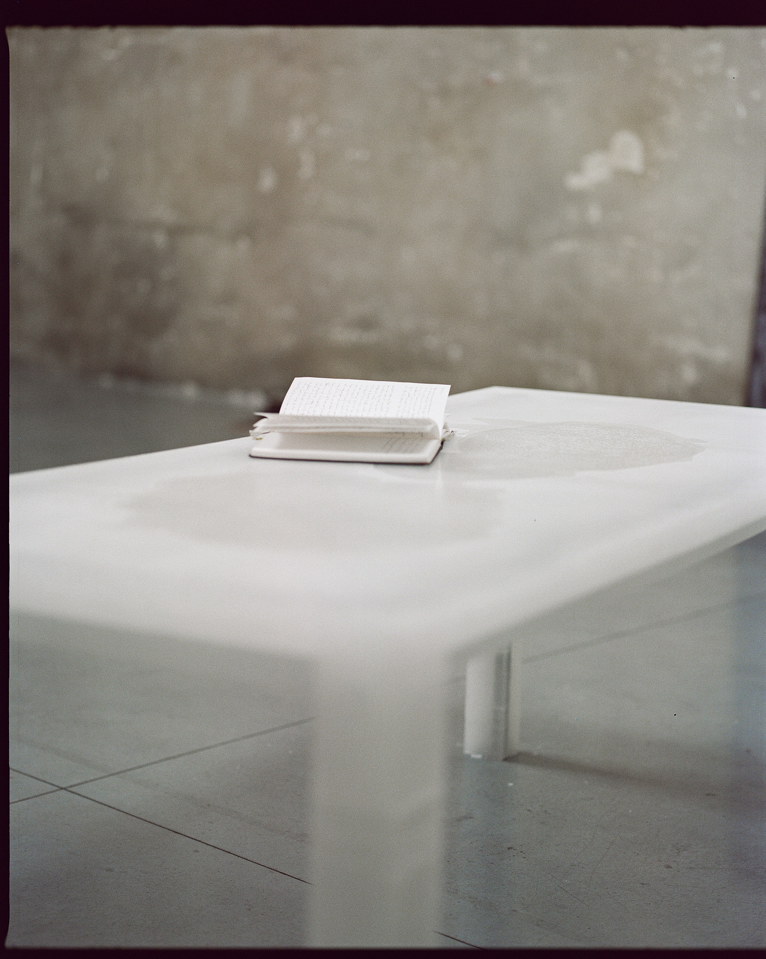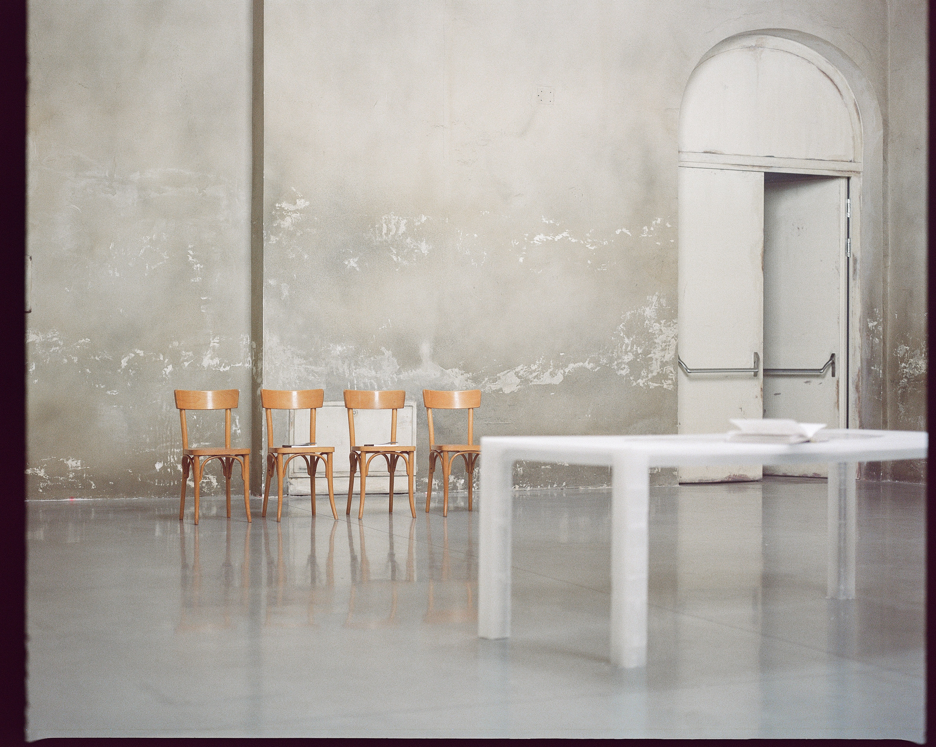 Der Inhalt dieser Arbeit und ihr Hauptthema sind identisch: Text und der Akt des Schreibens werden in den Mittelpunkt der folgenden Überlegungen zur Architektur gerückt, um eine Definition der Begriffe „Ort“ und „Raum“ zu entwickeln. Das zwischen diesen Begriffen und dem Schreiben aufgespannte Forschungsfeld ist komplex und außerordentlich vielfältig. Es war daher von Beginn an nicht das Ziel, dieses Themenfeld abschließend darzustellen oder eine eindeutige Theorie darüber zu formulieren, wie Raum geschrieben werden kann. Vielmehr werden unterschiedliche Perspektiven untersucht, indem theoretische Ansätze unredigierten Schriften über Räume, die von Kolleg_innen gesammelt wurden, gegenübergestellt werden. Mit dieser Herangehensweise wird die Dualität – die dialektische Beziehung zwischen Autor_innen und Leser_innen –, die tief im Akt des Schreibens verwurzelt ist, in den Vordergrund gerückt und eine heterogene Sammlung von Texten generiert, die verdeutlicht, wie tief das Selbst in die Räume, die es bewohnt, eingeschrieben ist, und wie tief diese Räume in das Selbst eingeschrieben sind. In diesem Prozess werden inhärente Potenziale dieses Aktes für die Wahrnehmung, Verarbeitung und Modulation von architektonischen Räumen ausgelotet. Abschließend finden diese Überlegungen ihre dreidimensionale Übersetzung in eine Installation, welche die Idee des Lesens und Schreibens aus der flachen, weißen Begrenzung der Seite herausführt. Sie besteht aus einem in Wachs gegossenen Tisch, vier gravierten Stühlen und Geräten zum Lesen einer fortlaufenden Textzeile.